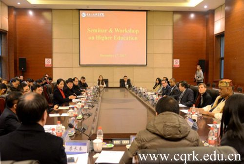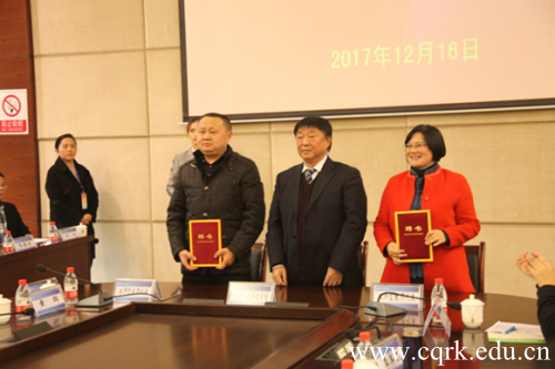 12月16日,由beat365官方网站、重庆工商大学派斯学院、重庆应用技术职业学院主办的“深化产教融合,推进双师型教师队伍建设”研讨会在beat365成功举行。市委教育工委委员、市教委专职督学邓沁泉,重庆市高等教育学会驻会副会长、秘书长严欣平,重庆市教委高教处处长蒋后强,教育部规范发展中心特聘专家顾永安等领导与专家出席,beat365官方网站党委书记张卫平主持了会议。三校校企校地合作单位代表、教师代表和长期支持学校工作的社会各界人士约120人参加了会议,现场聘任双师型教师近百人。