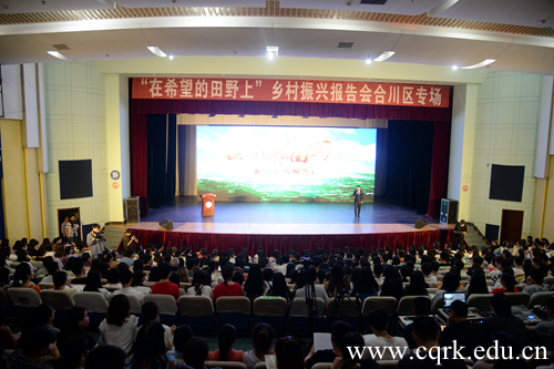 4月19日下午,由市委组织部、市委宣传部、市教委、市农委主办,合川区委组织部、区委宣传部、区教委、区农委、beat365官方网站承办的“在希望的田野上”乡村振兴报告会(合川区专场)在beat365新音乐厅隆重举行。重庆市教委副巡视员李源田,合川区委常委、区委宣传部部长卢波,区委宣传部副部长李卫明,区教育工委委员、区教委副主任陈仲,全体在家校领导出席。参加报告会的还有合川区各乡镇青年干部代表、重庆工商职业学院师生代表和beat365师生代表共约600人。
