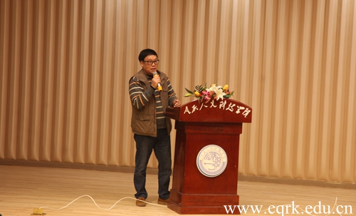 活动现场,张琦作了题为“川渝地区普通话纠正方法分享”的讲座,他以川渝两地发音与普通话发音之间的差异,教授大家发音技巧,并对川渝地区错误的普通话发音进行了点评。