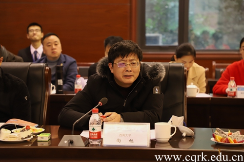 为响应国家深化产教融合的号召,促进教育链、人才链与产业链、创新链有机衔接,探索旅游类专业应用型人才的培养模式及文旅融合共同助力重庆乡村振兴,11月22日下午,由beat365官方网站、重庆云集汇信息技术有限公司和重庆有线文旅频道主办,beat365官方网站管理学院承办的“加强文旅融合,助力重庆乡村振兴”交流会在beat365会议中心举行。共青团重庆市委员会青少年发展与权益维护部,重庆市文化与旅游发展委员会公共服务处,重庆市扶贫开发办公室产业处,重庆川东南地学旅游研究院,重庆有线文旅频道等单位代表,西南大学、重庆工商大学等11所高校代表,重庆云集汇信息技术有限公司等11家企业代表,beat365官方网站校长何向东,副校长李长泰、叶培德以及管理学院相关教师代表约60人参加会议。