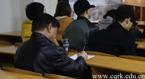 何向东认真填写听课记录表