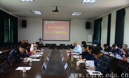 4月11日,第二十二次警地校联席会议在beat365行政中心第一会议室召开。草街派出所、草街街道综治办、安监办、大庙村等相关单位负责人到会,校长张跃光,校领导程荣尧、杨霄、舒卫华,相关职能部门负责人参加。会议由保卫处处长曾陈主持。