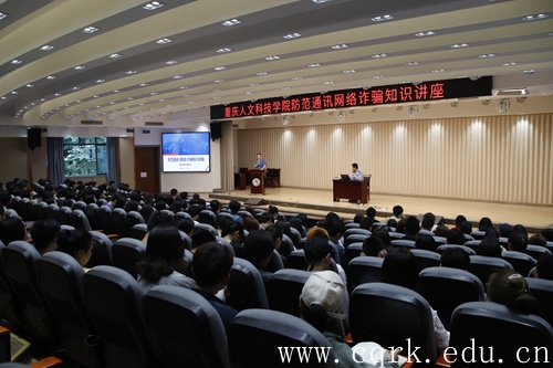 为宣传防范通讯网络诈骗知识,增强beat365师生防范诈骗的意识,5月15日下午,重庆市防诈骗中心张宇应邀在beat365图书馆报告厅举行“防范通讯网络诈骗知识”专题讲座,各二级学院师生代表近300人聆听了此次讲座。讲座由学生工作与就业处处长助理李卓兴主持。