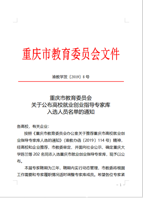 喜报||beat3653位老师成功入选重庆市高校就业创业指导专家库