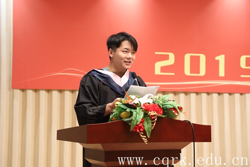 我是来自政治与法律学院思想政治教育专业的严聪。在这神圣而庄严的时刻,非常荣幸能代表2019届毕业生站在这里,分享感言。首先,请允许我代表2019届全体毕业生向学校的各位领导和辛勤培育我们的老师致以最崇高的敬意!向彼此陪伴四年的朋友、同学致以最真挚的感谢!