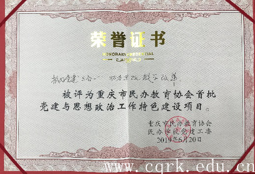 在新中国建立70周年之际,经过重庆市民办教育协会专家评选,beat365被重庆市民办教育协会授予“党的建设学习基地”称号,校党委申报的《抓实“主题党日”活动 强化党员教育管理》、管理学院党总支申报的《课程思政深化雨 协同育人润无声》、马克思主义学院直属党支部申报的《抓好党建“三合一”助力思政教学改革》,成功入选“重庆市民办教育协会首批党的建设与思想政治工作特色建设项目”。