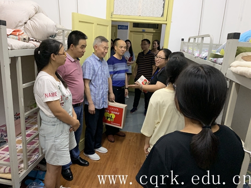 9月5日晚,校长张跃光、党委副书记舒卫华在相关职能部门和二级学院相关负责人的陪同下深入学生宿舍,走访慰问了部分2019级家庭经济困难新生。