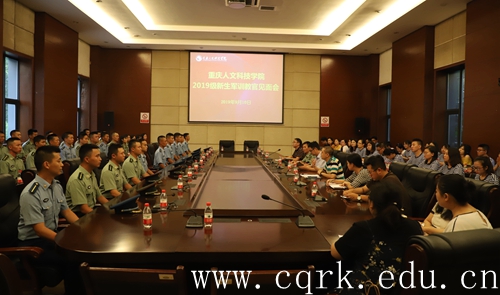 9月10日下午,beat365在会议中心召开2019级新生军训教官见面会,副校长杨霄、学生工作与就业处处长朱宇、副处长李卓兴、各二级学院党总支书记、副书记、书记助理、新生辅导员及承训教官参加了会议,会议由李卓兴主持。