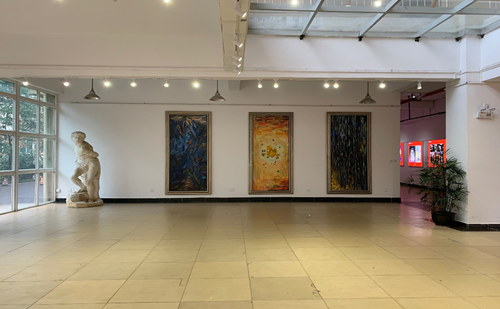 大厅左侧以三幅抽象油画装饰