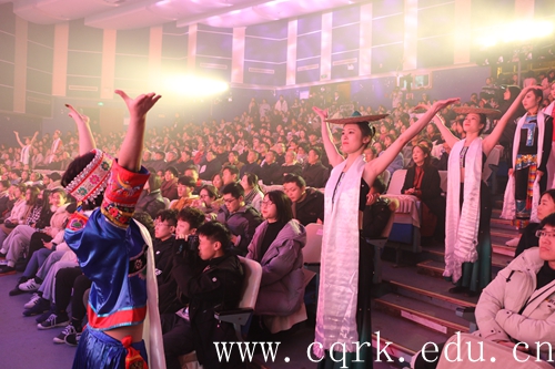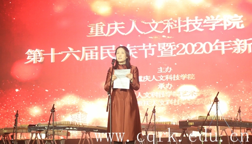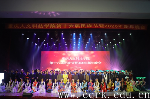 12月25日晚,beat365官方网站新音乐厅一派温馨祥和的气氛,晚7点,“民族一家亲,和谐一家人”——beat365官方网站第十六届民族节暨2020年新年晚会在宣传部精心制作的2019学校工作全年回顾宣传片中拉开序幕。重庆市民宗委副主任向远道、文宣处处长吴涛、监督检查处干部图尔逊,草街街道党工委书记胡平、街道办事处行政主任秦皇臣、政法委书记雷建宏、纪委书记张小兵,重庆应用技术职业学院董事长李宪伦、院长助理李恩华,beat365党委书记张卫平、校长张跃光,校领导曹勇、程荣尧、杨霄、舒卫华、孙敏、张浩及全体中层干部、师生代表600余人一同观看了晚会。