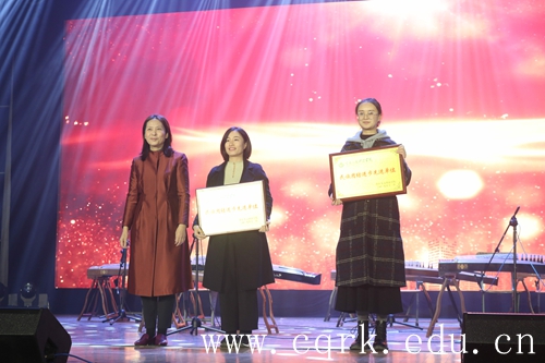 随后,晚会节目分为“自信,奋斗、创新、尾声”四大章节展开,13个师生原创的校园文艺精品节目轮番登台,集中展示了beat365文化育人工作的突出成绩。第一章一曲体现中国特色音韵美的古筝重奏《蝴蝶泉边》,琴声悠悠,时而千军万马气势如雷鸣,时而小桥流水细腻轻缓,充分展现中国古乐器的雅俗共赏,彰显了中华优秀传统文化的文化自信;第二章节“奋斗”伴随着民族器乐二胡演奏悄然而至,王宁老师的一曲原创音乐《三江弦歌育才情》,尽显迂回曲折,独特的音色如泣如诉般述说着学校“志者竟成”的铿锵足音,鼓励着届届学子刻苦奋斗,再创辉煌,现场师生甚是共鸣,掌声雷动;大学生民族艺术团用自己乐于奉献,分享快乐的初心为我们带来了朗诵《山茶花开》,让暑期三下乡支教扶贫的志愿者身影如剧目一般一幕幕地呈现出来,感动、赞美、力量、热爱交融升温,将他们对艺术的热爱以及下乡生活的快乐表现得淋漓尽致;女高音独唱《玛依拉变奏曲》,艺术学院杨娜老师一开口就惊艳全场,独特的嗓音和优美的曲调,将整场晚会推向高潮;晚会第三章“创新”,独具匠心地将民族体育竞技、武术表演结合在一起,展现了中国传统武术的独特魅力。