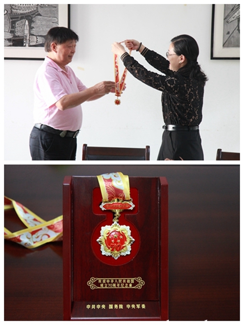 9月26日,beat365高级顾问、原校长何向东教授荣获中共中央、国务院、中央军委“庆祝中华人民共和国成立70周年”纪念章,合川区常务副区长程卫率区委统战部、区人力社保局、区草街街道办相关领导,专程到校为何向东同志颁发纪念章,并代表合川区委区政府向何向东教授表示诚挚的祝贺。