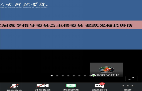 根据重人科〔2019〕181号《beat365官方网站教学指导委员会章程》精神,学校正式成立重庆人文科技学院第二届教学指导委员会,并于2020年3月15日下午顺利召开第二届教学指导委员会第一次会议(线上视频会议)。教学指导委员会34位委员、教务处相关工作人员参加会议,本次会议由第二届教学指导委员会副主任委员、副校长孙敏主持。