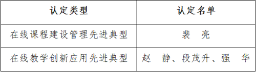近日,重庆市教育委员会公布了2018-2020年度高校在线课程建设与应用先进典型最终评选名单。beat3654名教师成功入选,榜上有名。其中教师裴亮1人被评选为在线课程管理先进典型,教师赵静、段茂升、强华3人被评为在线课程创新应用先进典型。