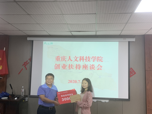 学校党委书记张辉给天元乡籍学生徐孝兰颁发创业扶持资金