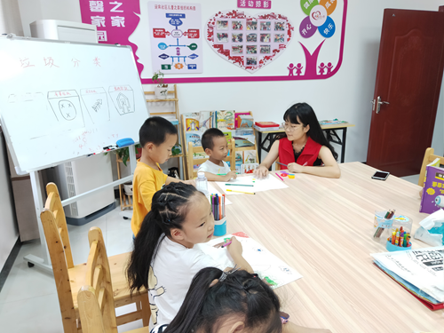 2018级学生袁宇(右一)在开州区参与“会志愿服务”常能实践项目