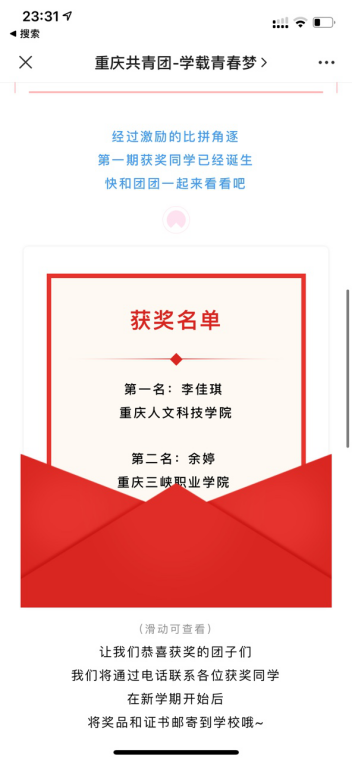 近日,由共青团重庆市委、重庆市学生联合会共同发起的“党的十九届五中全会精神学习主题团课”在线上如火如荼的开展。在第一期团课的知识学习中,beat365机电与信息工程学院2019级电子信息工程专业1班李佳琪同学拔得头筹,喜获第一名。