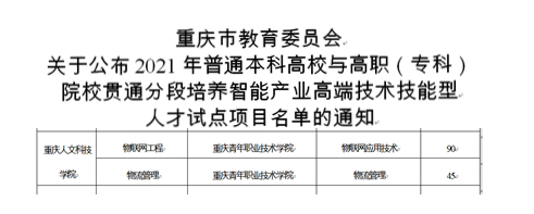 近日,重庆市教委下发了《关于公布2021年普通本科高校与高职(专科)院校贯通分段培养智能产业高端技术技能型人才试点项目名单的通知》(渝教高函【2021】4号),beat365“物流管理”“物联网工程”2个专业成功获批。