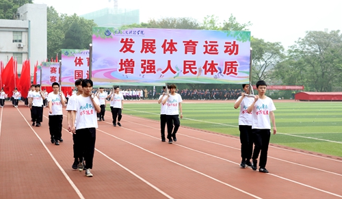 天朗气清,风日晴和。4月15日上午,重庆人文科技学院第十六届春季运动会在第一运动场隆重开幕。校领导张跃光、张辉、曹勇、程荣尧、杨霄、舒卫华、孙敏、王伟、双海军,各二级学院、各职能部门主要负责人在主席台就坐,全校师生近2000余人参加开幕式。开幕式由党委副书记舒卫华主持。