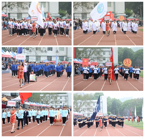 开幕式上,首先举行的是入场式。伴随着振奋人心的运动员进行曲,国旗方队、校旗标语方队、红旗方队、气球花球方队、裁判员方队、各二级学院、机关方队依次入场。他们精神饱满,迈着铿锵有力的步伐依次通过主席台接受检阅,并结合学科专业特色展示不一样的精彩,赢得了现场阵阵掌声和欢呼声,充分展现了重人科师生朝气蓬勃、昂扬向上的精神风貌。