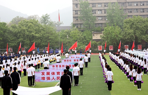 庄严的升旗仪式结束后,校长张跃光致开幕辞,他首先代表学校党政对运动会的举办表示热烈的祝贺。他指出,此次运动会是学校新冠疫情常态化防控以来举行的第一次大型活动,是学校贯彻落实习近平总书记关于教育、体育的重要论述,加强和改进新时代体育工作的重要举措,是检验学校体育工作的重要手段,也是师生们释放自我、激扬活力的有效平台。他表示,学校高度重视体育教育,近年来,学校体育运动条件不断改善,体育教学成绩斐然,课外体育活动有声有色,竞技比赛捷报频传,各项体育活动培养了师生阳光活力、健康积极、竞争合作、坚毅果敢的气质。他希望,全体师生员工以本次运动会为新的起点,走向操场、走进自然、走到阳光下,用实际行动去追求“更高、更快、更强”的奥运精神,用向前奔跑的加速度跑出自我成长的加速度,用尽情呐喊的欢呼声喊出重人科胜利的最强音!