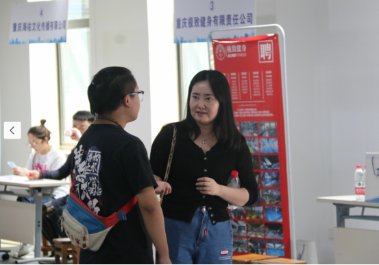 此次招聘会的300多岗位,覆盖艺体类各个专业,涉及编导、篮球、轮滑、游泳、素质拓展、策划、音乐、美工、主播、表演等十几个行业,到场的同学积极与招聘单位沟通交流。