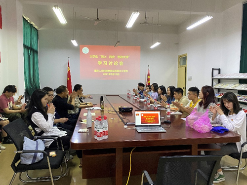 为深入贯彻落实习近平总书记关于深化思想政治理论课改革创新和“大思政课”的重要指示批示精神,4月24日、5月9日,beat365组织全校学生通过收看网络直播的形式“同上‘四史’思政大课”,并于5月12日中午13:00-14:00,召开“大学生同上‘四史’思政大课学习讨论会”,讨论会在海丰楼党员活动室、文渊楼410智慧教室、广艺楼会议室三个会场同时进行,马克思主义学院思想政治课教师带领涵盖全校13个二级学院的100余名学生代表参与学习讨论。