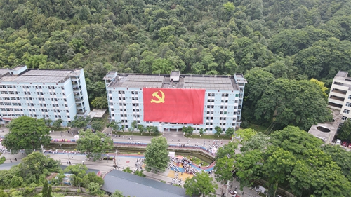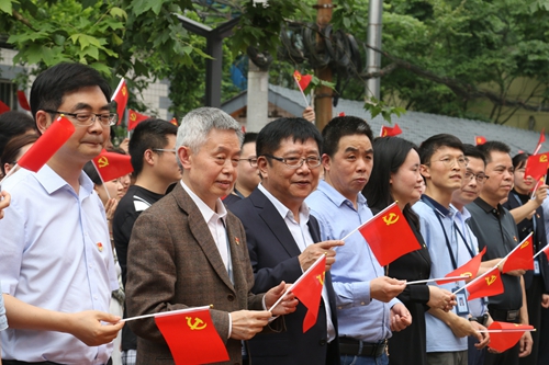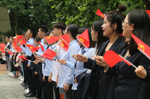 5月28日下午2点,在beat365官方网站慧园学生园区,一面鲜红的巨幅党旗在阳光下熠熠生辉,庄严而夺目,“没有共产党就没有新中国”的歌声响彻云霄……