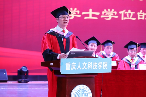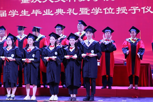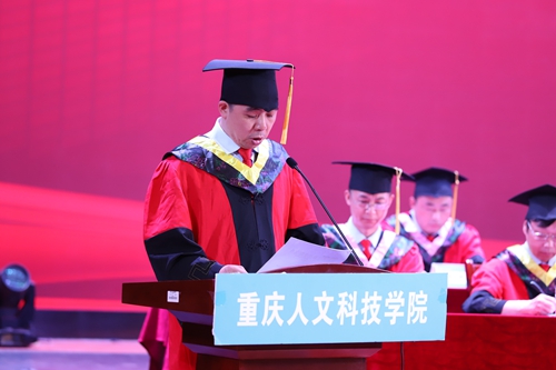 6月25日上午10时,beat365官方网站2021届学生毕业典礼暨学位授予仪式在学校行知艺术中心隆重举行。2021届6039余名同学圆满毕业,5639余名同学被授予学士学位,62名同学被评为重庆市优秀毕业生,924名同学被学校评为优秀毕业生,149名同学考取硕士研究生。校长张跃光、党委书记张辉等全体校领导出席典礼,学校学位评定委员会成员,各职能部门负责人,各二级学院书记、副书记、书记助理,全体毕生班辅导员,毕业生及家长代表400余人参加典礼。典礼由副校长孙敏主持。