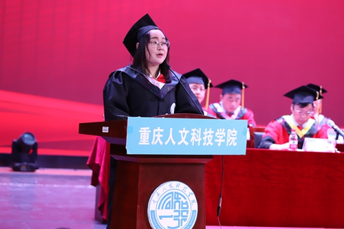 学生代表李璐在发言中表达了对学校领导与老师的敬意、对同学和谐勤学互勉的感谢,分享了自己对未来事业的基本规划,衷心祝愿母校桃李满疆、英才辈出,全体同学尽展才华、前程似锦。