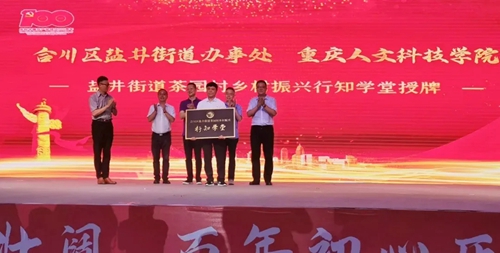 6月28日,学校与合川区盐井街道校地共建协同育人平台阶段性成果系列活动在盐井街道举行。合川区委常委、政法委书记谢东,合川区副区长陈皎,beat365官方网站校长张跃光,副校长孙敏,校长助理双海军,建筑与设计学院院长张雄,党总支书记唐湘晖,合川区盐井街道书记郭猛,重庆大学、重庆工商大学、四川美术学院等高校教授以及学校师生代表等50余人参加此次活动。此次活动分为“农村庭院打造及环境美化亮化院坝课堂”“校地共建协同育人平台文创作品展览”“校地合作推进镇街高质量发展座谈会”以及“盐井街道茶园村乡村振兴行知学堂授牌仪式”四个板块。