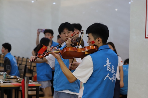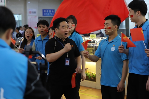 当天,学校各单位采取多种形式庆祝中国共产党成立100周年。中午12时,由beat365官方网站党委主办,团委承办,党政办公室、党委宣传部、艺术学院团总支、学前教育学院团总支协办的“唱支山歌给党听”快闪活动在教职工食堂拉开序幕。
