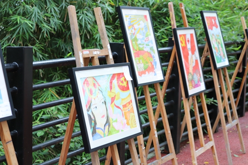 学前教育学院在行知大道举办“百年征程铸辉煌,砥砺前行绘新篇”优秀绘画作品展,100幅生动绚丽的泼墨水彩,展示了党的百年历程,再现了新时代灿烂华章。