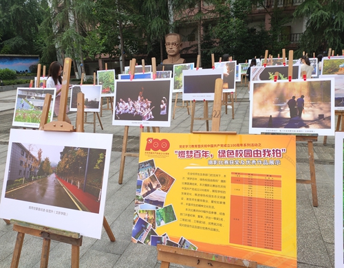 党委宣传部、团委、后勤处、资产处在行知广场举办摄影作品展,用光影诉说对党的祝福和对党百年华诞喜悦。