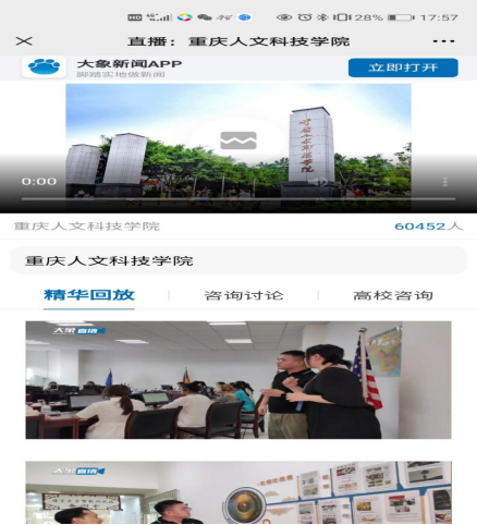 为增强与考生、家长的互动交流,6月30日,beat365首次通过在线直播方式举行本科招生咨询暨校园开放日活动。在近3小时直播活动中,观看人次达6万余人。