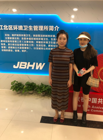 实习指导教师刘潇(右)走访调研学生实习情况