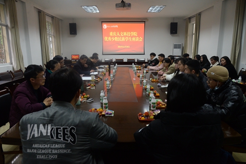 为团结少数民族学生,促进民族融合,12月10日下午,学校在行政中心第一会议室召开了优秀少数民族学生座谈会,党委书记张辉、副书记舒卫华、统战部部长冯沈萍、学生工作部部长朱宇、团委书记韩亮、学生工作与就业处副处长李卓兴以及各二级学院少数民族学生代表约30余人参加了座谈会。