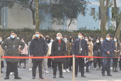 为做好2022年春季学校新冠肺炎疫情防控工作,提高学校新冠疫情应急反应和处置能力,保护好师生员工的身体健康和生命安全,2月24日下午,学校在智园二舍开展了新冠肺炎疫情防控应急模拟演练,校领导张跃光、程荣尧、杨霄、舒卫华、孙敏以及各职能部门主要负责人、教职工代表参加了此次演练。
