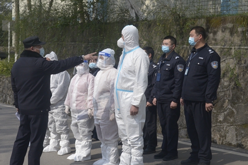 在演练总指挥张跃光的命令下,疫情防控应急模拟演练正式开始。演练情景:假设学校一名学生在返校过程中与一名新冠肺炎核酸检测为阳性的人员有密切接触,学校在接到通知后高度重视,校长下令立即启动新冠肺炎疫情防控应急预案并召开紧急会议,辅导员随即对其展开安抚工作,并将该密切接触者的情况逐级上报,学生工作与就业处、人文医院、保卫处和各二级学院立刻对次密接及一般密接展开排查,同时,人文医院按照疫情防控要求安排救护车和医护人员到智园二舍将该密切接触者接到合川区进行集中隔离医学观察,疫情防控工作专业人员对该生所在寝室和楼栋公共场所采集样本进行新冠病毒核酸检测,消毒人员对密切接触者寝室、寝室楼栋和学校公共环境进行消毒,学校也立即启动了《大规模新冠病毒核酸检测工作方案》,进一步加强校园门岗管理,对出入校园人员进行严格管控,坚持“两点一线”,不串门、不聚集,“非必要不外出”,各部门各司其职,保障了校园的正常秩序。到此,本次疫情防控应急模拟演练圆满结束。
