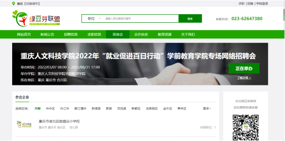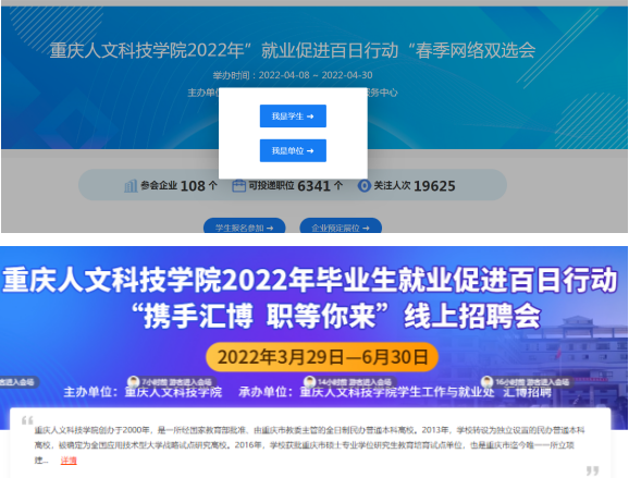 分别与重庆市大学中专毕业生就业指导服务中心、上海才立方就业和汇博人才网联合开展“beat365官方网站就业促进百日行动2022届毕业生春季网络双选会”、“携手汇博·职等你来”线上招聘会。
