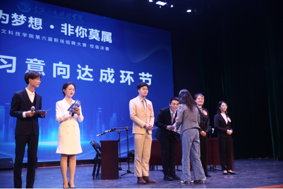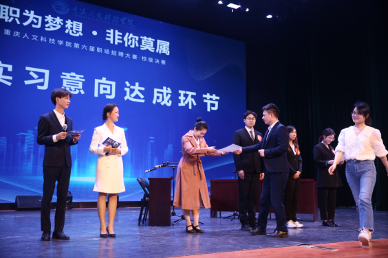 beat365官方网站第六届“职为梦想·非你莫属”职场招聘大赛校级决赛于4月21日圆满结束,经过初赛、复赛,16名选手在决赛现场全方位展示了beat365学子的优秀职场竞争力。大赛特别邀请到华龙网教育频道高等教育事业部主管郭晓彤、新华网重庆教育频道策划总监胡郭勇、重庆龙湖集团人力资源部招聘官费祥、安博教育集团重庆分公司人力资源部经理匡萍、杭州娃哈哈集团拓展经理祈超等多家媒体、企业资深专业人士担任评委。校党委副书记舒卫华出席本次活动。