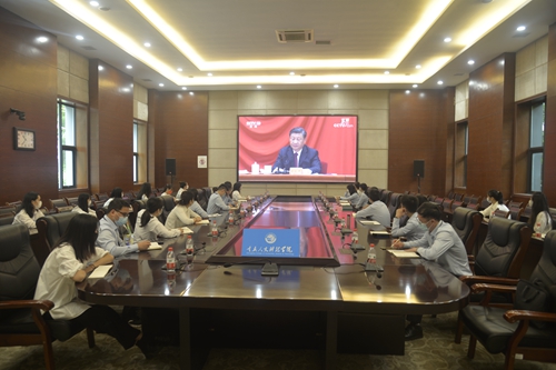 一是第一时间跟进学。学校党委高度重视,第一时间组织全校各级团学组织、青年师生观看庆祝中国共产主义青年团成立100周年大会现场直播。在庆祝中国共产主义青年团成立100周年大会结束之后,随即召开学生代表座谈会,组织全校师生热议,推动学习的热情高涨。随后,学校召开了党委会、党委理论学习中心组(扩大)学习会,传达学习习近平总书记在庆祝中国共产主义青年团成立100周年大会的重要讲话精神,要求将学习讲话精神与学习习近平总书记对青年工作的系列论述相结合,与科学谋划学校发展、十四五开局统筹推进,把学习成果切实转化为推动学校发展的实际成效。二是多种形式丰富学。各二级学院、各部门积极响应,通过二级党组织理论学习中心组学习、教职工政治理论学习、党支部“三会一课”、主题班会、党团日活动等多种形式开展了丰富多彩的学习宣传活动,全校各基层支部、团员青年师生全覆盖参与,其中专题学习会、专题分享会607场,参与人数超18000人;主题教育活动、主题班会58场,参与人数6103人次;开展“青春献礼二十大,资助伴我向未来”主题演讲比赛,参与人数360人次;开展红色电影展播,参与人数196人次。