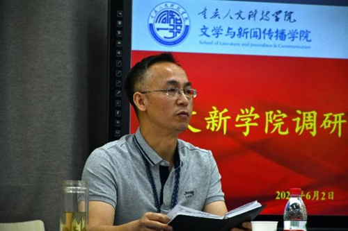 调研座谈会上,文学与新闻传播学院院长高廉平就学院概况、学生工作、教学工作、学科专业建设、师资发展以及办学条件等方面内容作了详细汇报,客观分析了学院发展中存在的问题和短板,并针对性地汇报了学院下一步的工作思路。