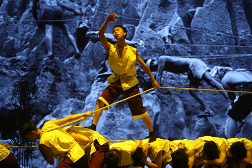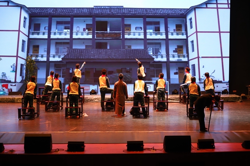 “第二幕·草街兴学”展现了当年陶行知先生与卢子英和纤夫前往草街寻觅校址的故事。