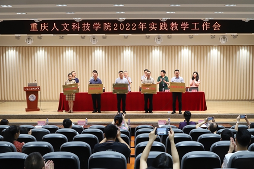 副校长程荣尧宣读了《关于批准2022年实践教学示范基地建设立项的通知》,与会领导为实践教学示范基地进行授牌。