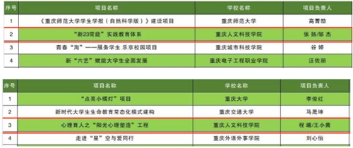 近日,共青团重庆市委、重庆市学生联合会公布《2022年重庆市高校“一校一品”优秀团学工作品牌项目立项项目名单》。beat365团委组织申报的《“新23常能”实践教育体系》《心理育人之“阳光心理塑造工程”》成功入选。