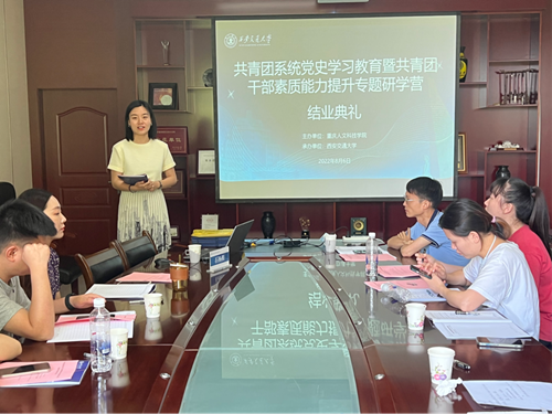 步履不停,一路成长。经过6天的集中培训,2022年beat365官方网站共青团干部党史学习暨素质能力提升专题研学营顺利完成各项学习任务圆满结业。8月6日上午,在西安交通大学继续教育学院综合楼会议室举行了结业典礼。学校团委书记韩亮、研学营班主任许一鹭及全体学员参加,典礼由学校团委副书记帅婷婷主持。