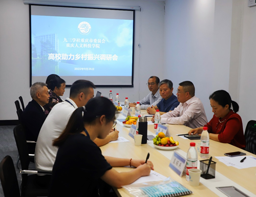 参会人员就孙磊教授工作室工作情况、九三学社与学校合作协同助力乡村振兴等方面进行了充分的讨论。黄华充分肯定了学校建设发展取得的成绩,并表示九三学社愿意与学校在发挥科技人才作用、开展社会服务、助力乡村振兴、学生实习实践基地建设等方面加强合作,为合川发展、学校发展提供服务和保障。