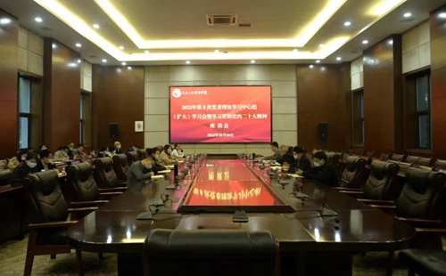 10月26日下午,学校在会议中心组织召开2022年第8次党委理论学习中心组(扩大)学习会暨学习贯彻党的二十大精神座谈会。全体党员校领导、党委委员、职能部门负责人,各二级学院党总支书记、副书记参加会议。会议由党委副书记舒卫华主持。