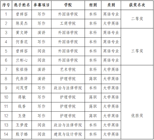 近年来,学校积极探索应用型本科高校的创新路径,持续加强学生应用能力的培养,大力鼓励学生参加各项各类学科竞赛,以赛促教,以赛促学。本次大赛所取得的成绩,彰显了学校人才培养成效,也体现了新文科背景下学校外语教学改革成果。